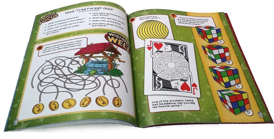 This book contains over 150 puzzles, games, riddles magic tricks, betchas, optical illusions, jokes and much more!