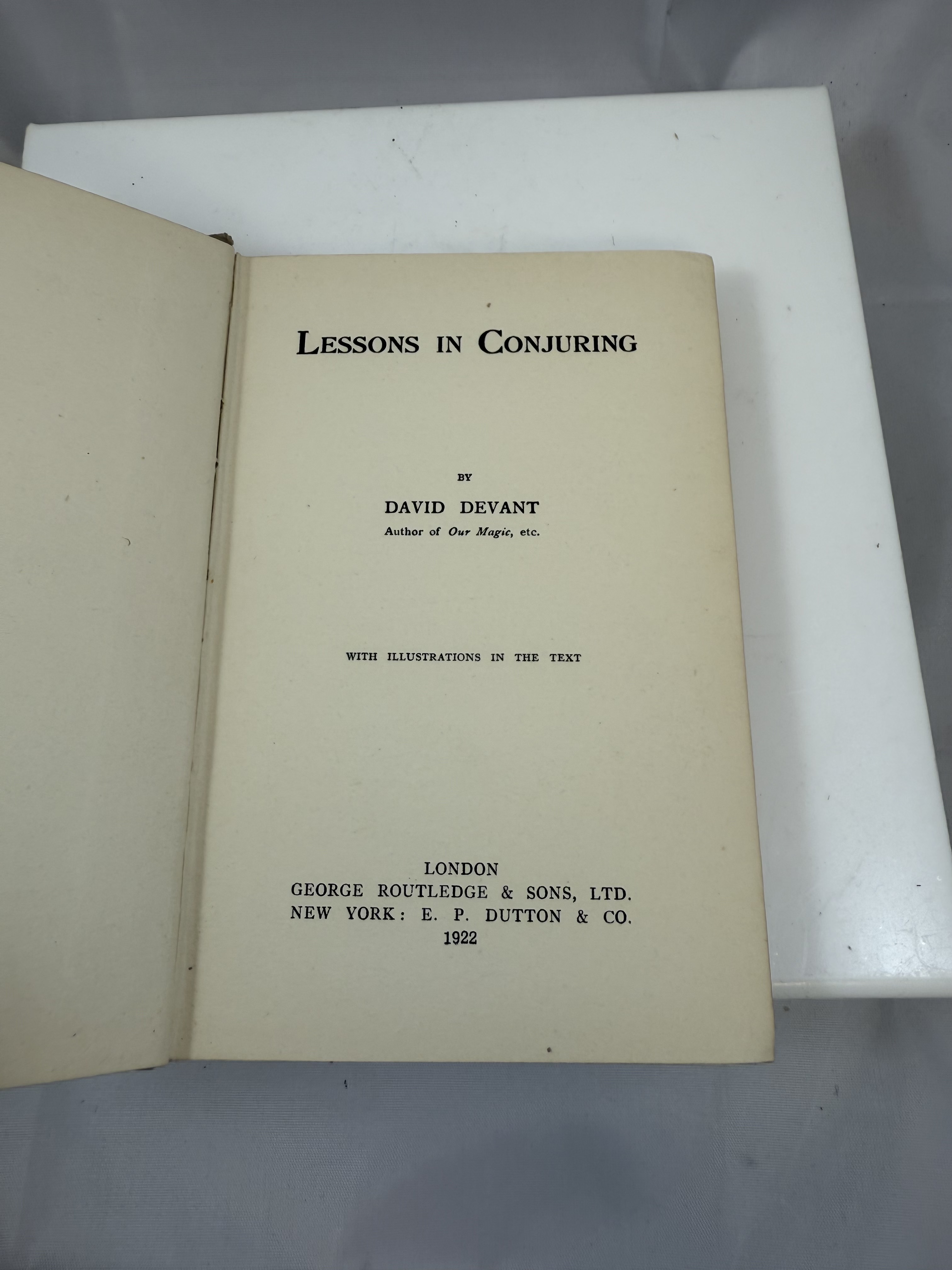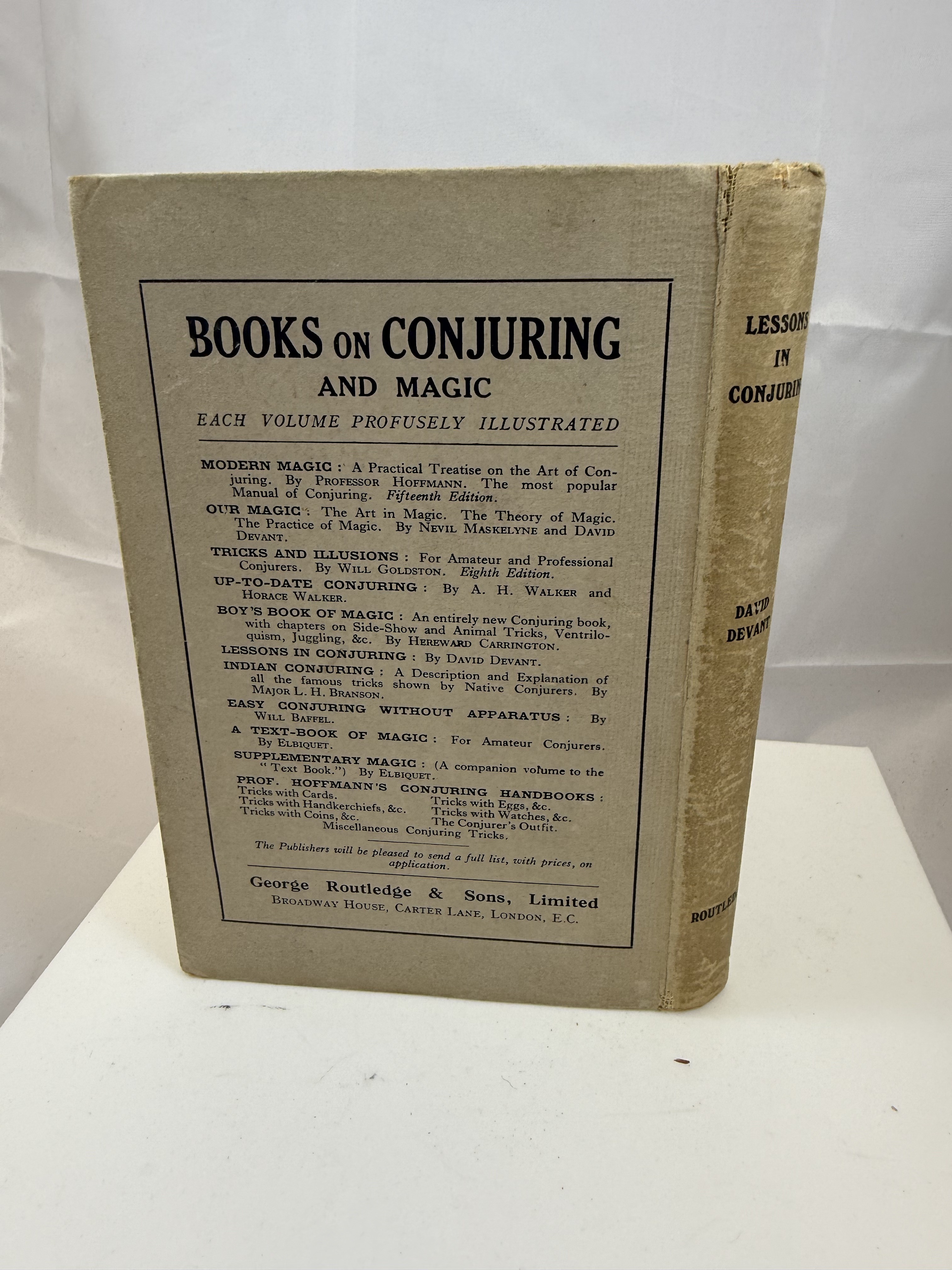 Step into the golden age of conjuring with this vintage hardcover copy of Lessons in Conjuring by David Devant, one of the most influential magicians of the early 20th century and a founding member of The Magic Circle in London. This 152-page instructional book, published in 1922 by George Routledge & Sons, captures the essence of practical stage magic from an era when sleight-of-hand and charm ruled the boards.