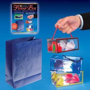 Pro Tip: When setting up this prop, place a 9" or 12" silk handkerchief, that matches some of the flowers, into the bag and also produce them between the Boxes of flowers.