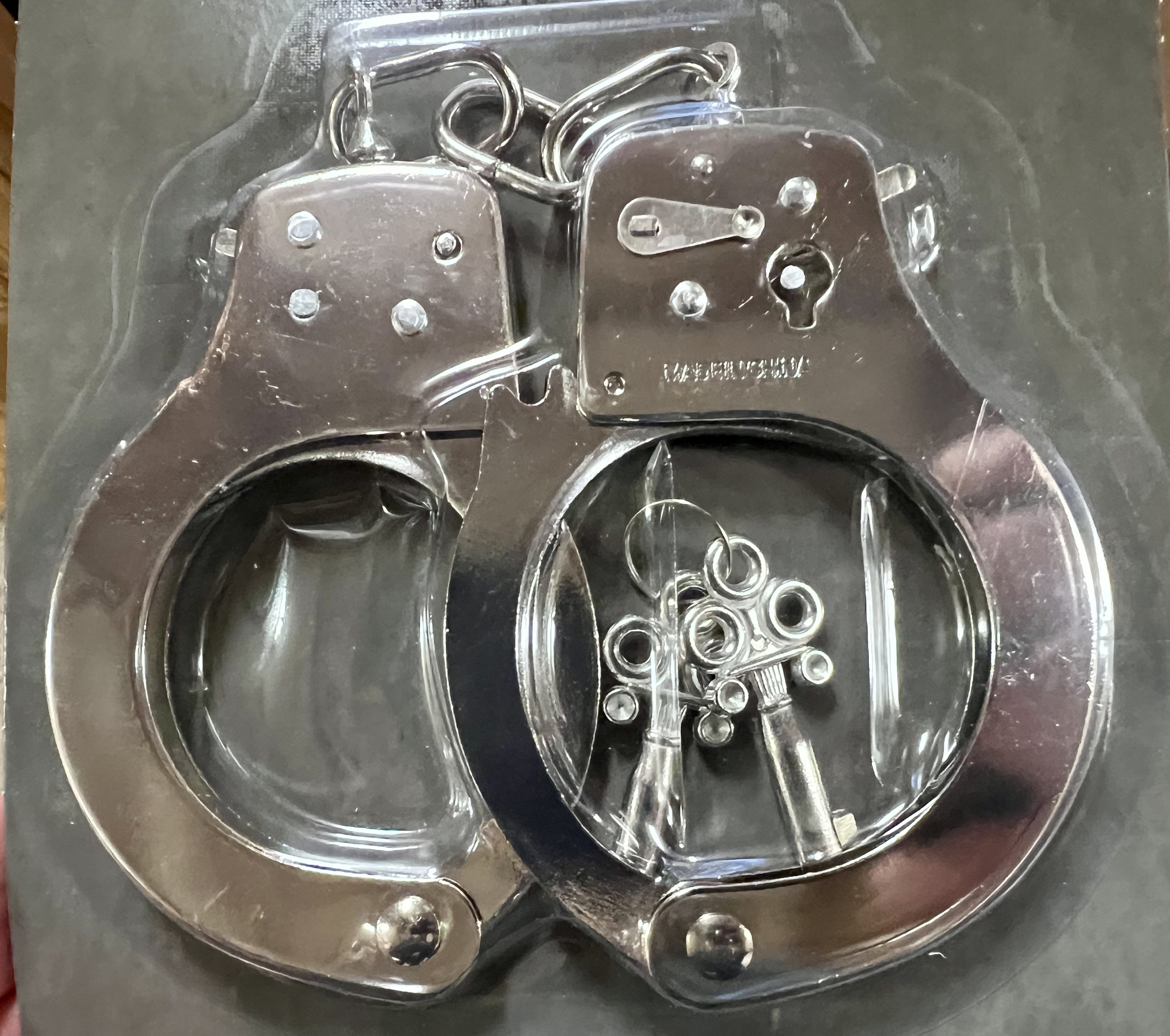 Nothing is better than the real thing. Mostly for show and quick escape. Made of lightweight metal these handcuffs with two keys are packaged on a blister card and have a quick-release button. These are perfect for using in photo shoots, Sub Trunk escape or any effect where the cuffs are not going to be closely examined as they have a quick release safety button.