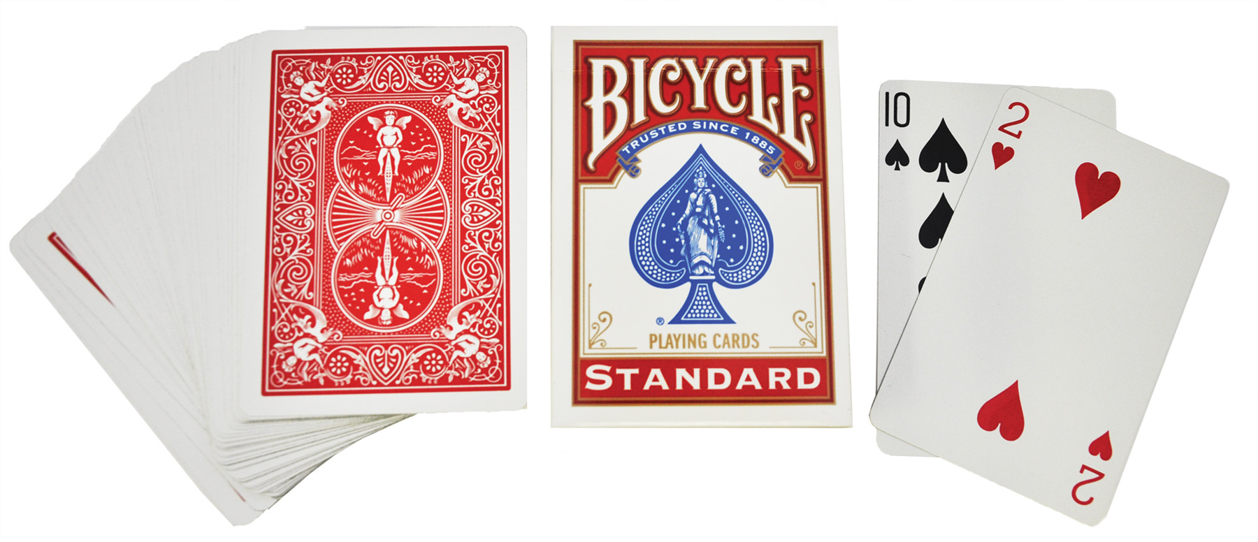 Precision-made Bicycle Poker size deck gimmick. We also offer this Effect in Bridge Size Enardoe Cards, see else where on this website.