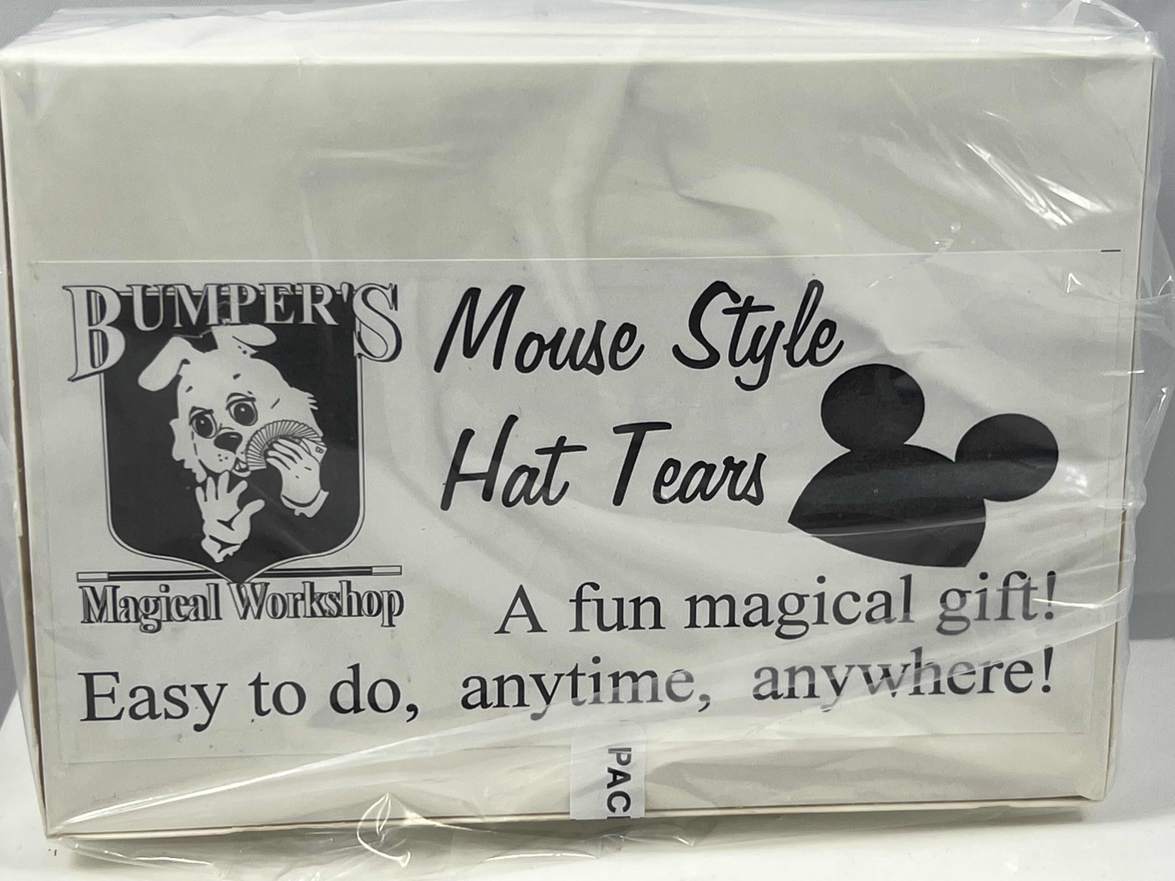 Basic Effect: The Magician invites a small child to the stage. Then he promptly tears two pieces of tissue paper into small pieces. A few magical words and a wave of the wand or hand, lots of optional options for comedy gags here. IE: The Break-away wand or Break-away Fan, Nest of Wands, etc. and the paper has now, not only restored but has turned into a large hat with mouse ears. sort of like that famous Disney™ Mouse! With the permission of the child the hat is placed on their head as a souvenir of the performance. This is a great routine especially for Birthday parties, you can use the hat for boys and girls of almost any age. It is also suitable for most family style shows as it's not a celebration type hat as many of the others sold. If you come up with a nice personal story about your first visit to DisneyLand™ or Disney World™ or maybe a story about seeing Mickey Mouse™ on television with Walt Disney, etc. you'll have the beginnings of a great personal routine.