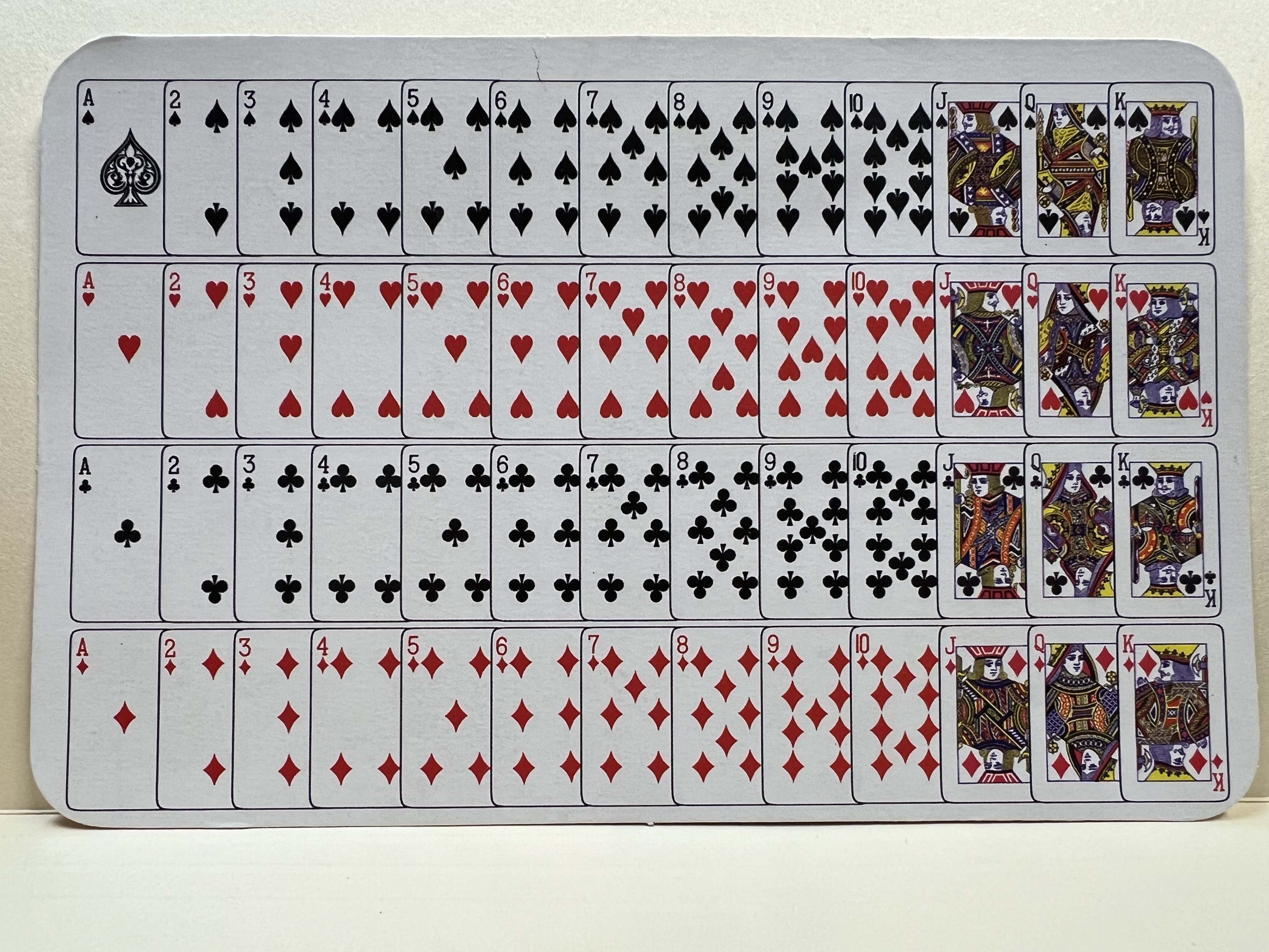 Basic Effect: The magician says he will find the spectator's card, he triumphantly produces the 52 on 1 jumbo card. Of course, every card in the deck is printed on the large card.