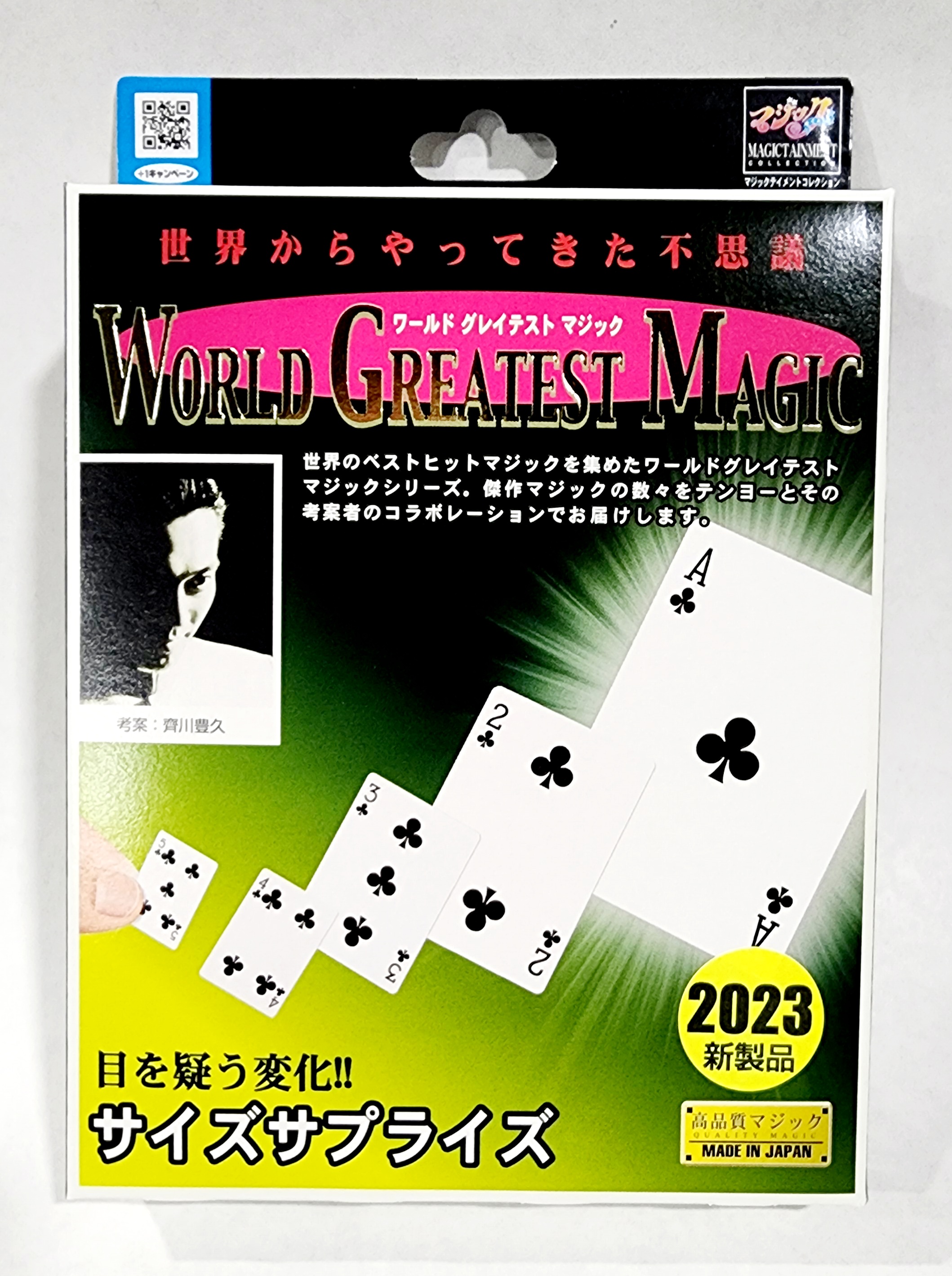 Basic effect: Show the ace through five of clubs in your hand, and ask, “The ace is big, but which of these is the next biggest card?” Your spectator will naturally answer, “The five.” Suddenly the cards all change in size – the five becomes a tiny card and the ace expands to jumbo size!