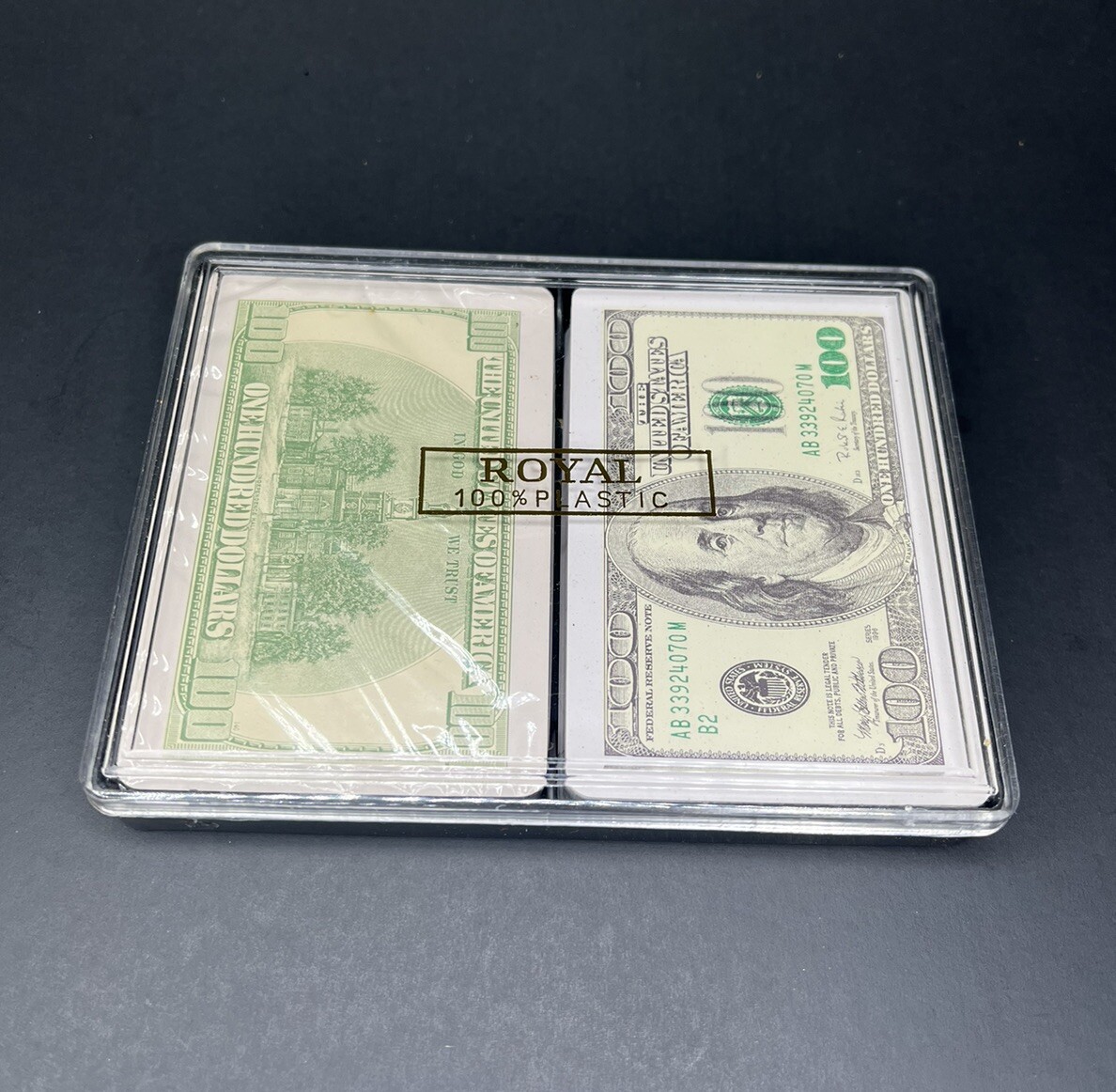 Vintage Royal “$100 Bill” Two-Deck Set in Clear Plastic Case