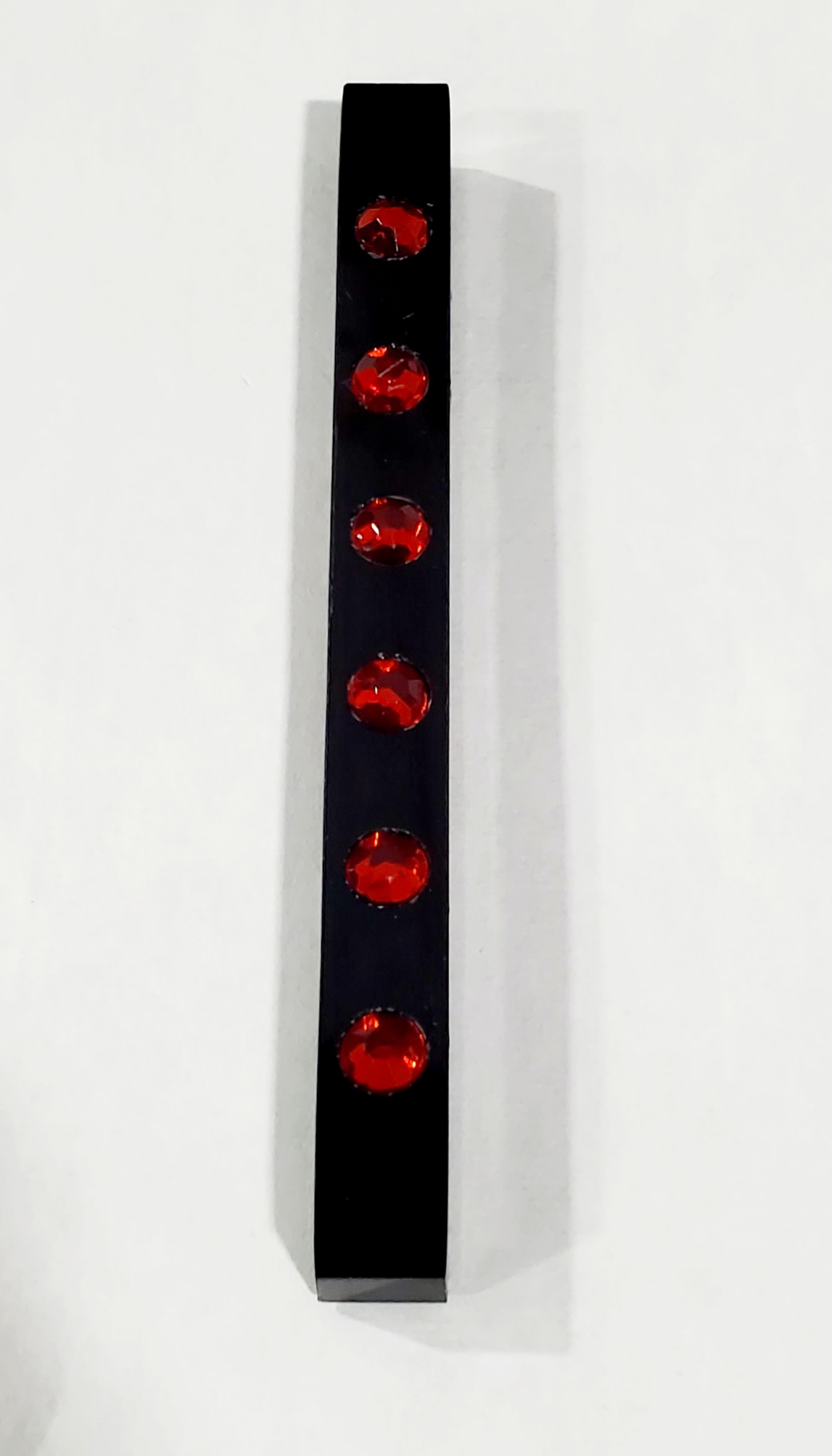 Basic effect: Magician shows a handsome black plastic rod with six different colored gems on it. There are also six different colored gems on the opposite side of the rod. Spectator selects one of the different colors and INSTANTLY all the gems change to the selected color on BOTH SIDES!