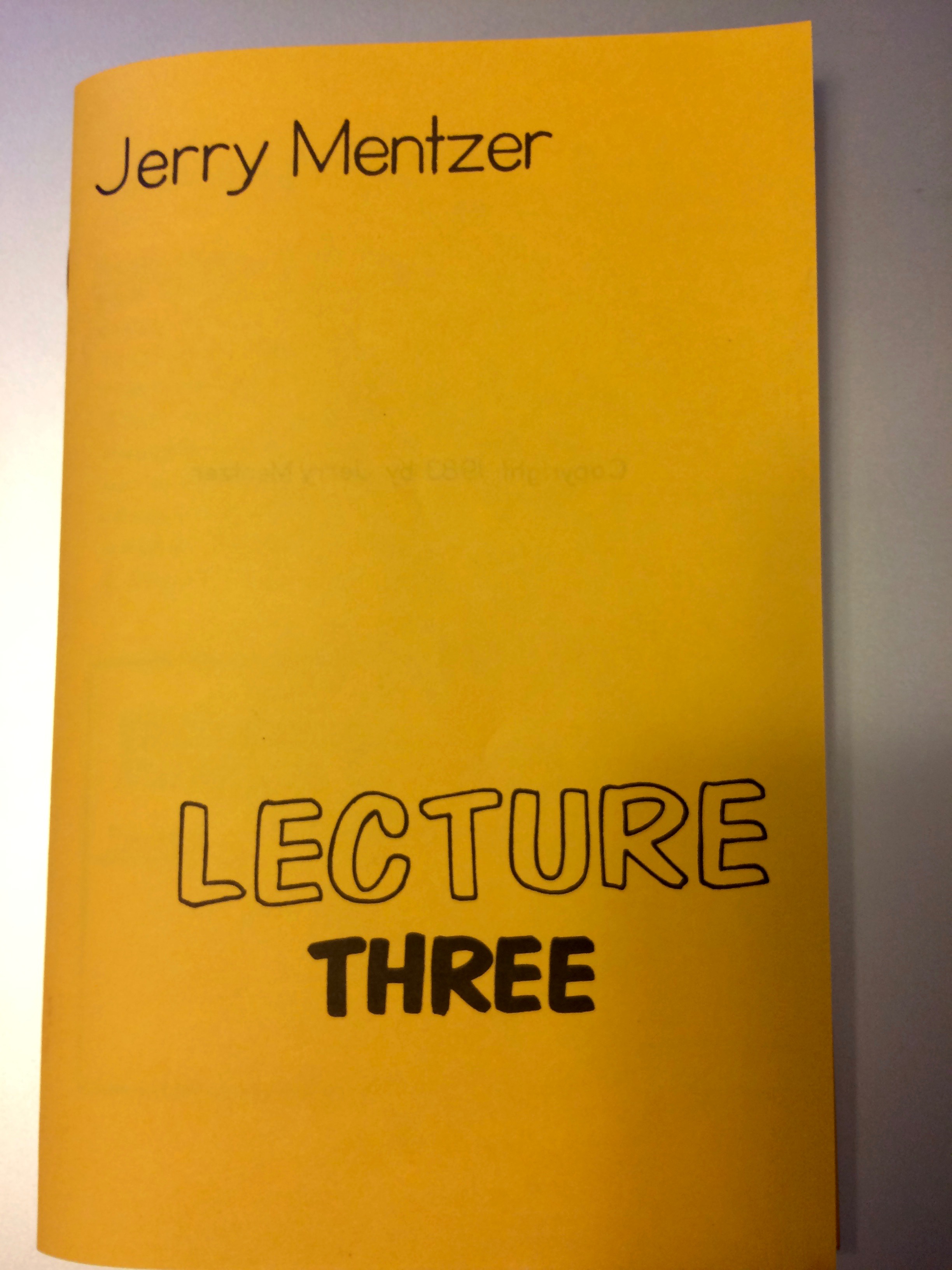 Jerry Mentzer's Special Lecture Club & Stage Notes