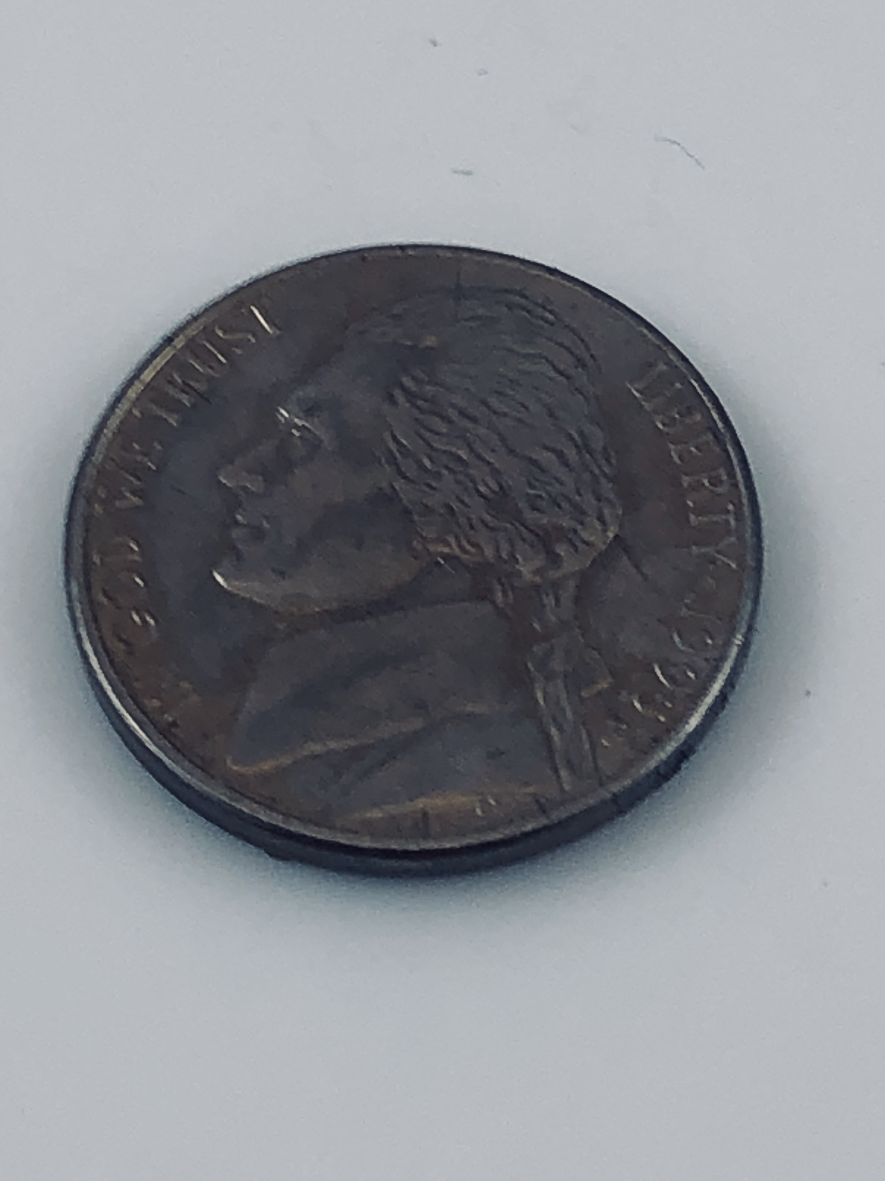 This is a U.S. Nickel coin with a magnet concealed inside. Lots of tricks are possible with this type of coin.