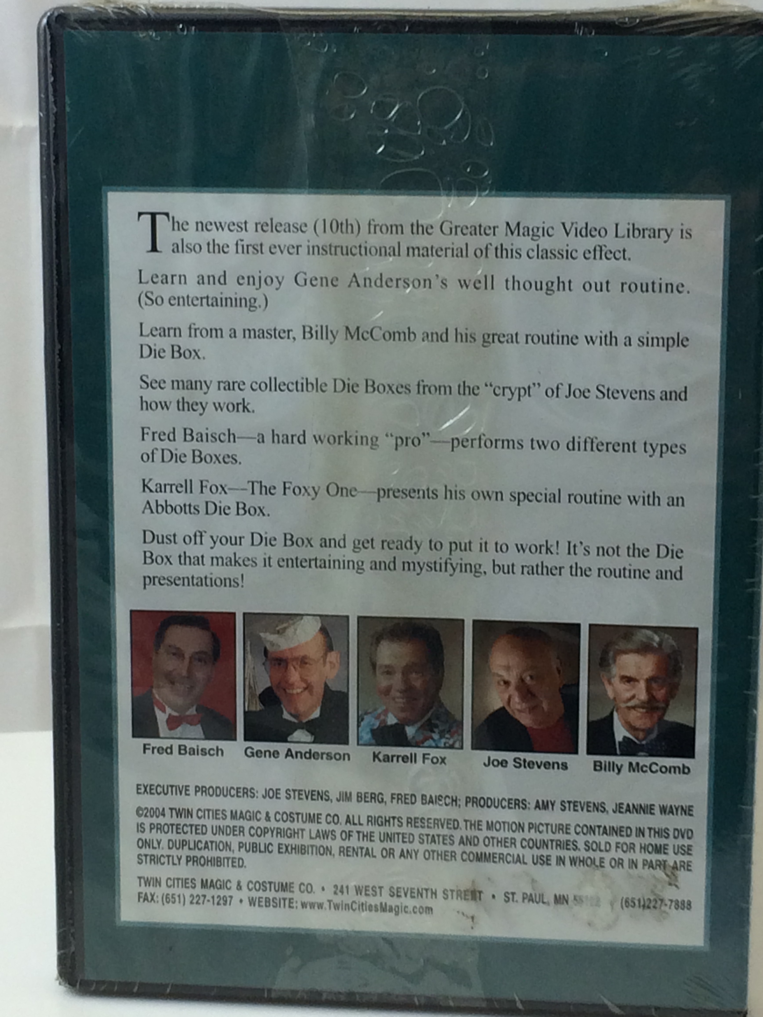 The 10th release from The Greater Magic Video Library is also the first-ever instructional material of this classic effect. Learn and enjoy well thought out and great routines with a simple Die Box. See many rare collectible Die Boxes, a pro performs two different types of Die Boxes, a special routine with an Abbotts Die Box. The routines and presentations are entertaining and mystifying.