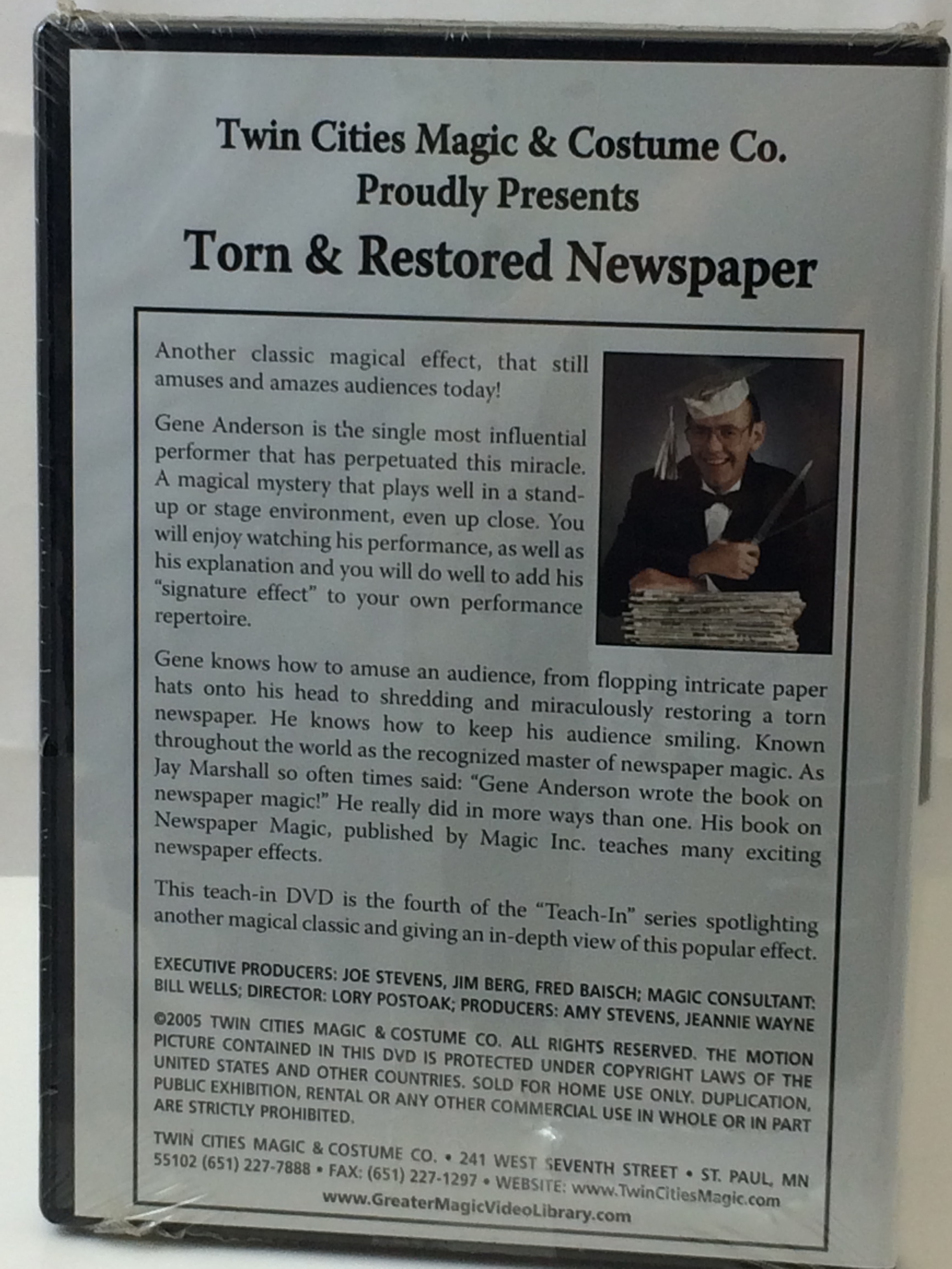 Showcasing Gene Anderson...This is the fourth volume of the Greater Magic Video Library Teach-In Sessions. It spotlights a magical classic and gives an in-depth view of the popular effect - Torn & Restored Newspaper. Gene Anderson's version of this effect is the most well-known. A magical mystery that plays well in a stand-up or stage environment, as well as watching it up close. You will enjoy watching his performance, as well as his explanation. You will do well to add his signature effect to your own performance repertoire. Gene knows how to amuse an audience, from flopping intricate paper hats onto his head to shredding and miraculously restoring a torn newspaper. He knows how to keep his audience smiling. Known throughout the world as the recognized master of newspaper magic, you can now learn this classic effect from the master teacher!