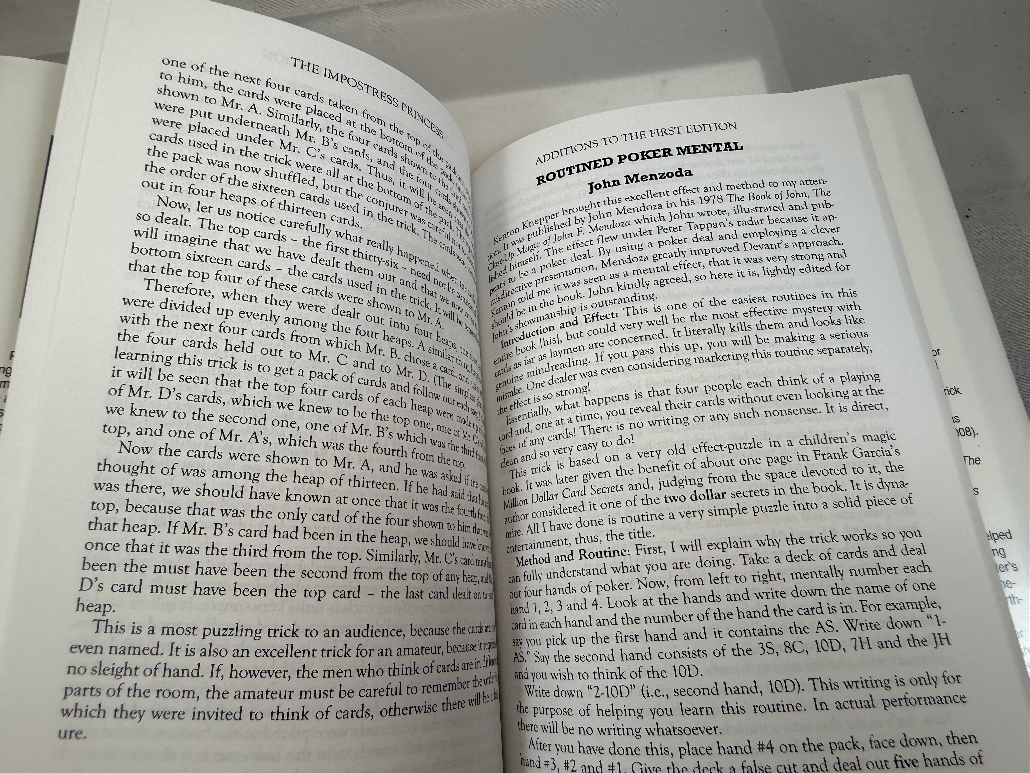 A scholarly deep dive into the classic Princess Card Trick, this expanded edition—updated by Phil Willmarth—explores a wide array of methods, presentations, and psychological touches for performing this timeless routine. Contributions from legendary minds like Al Koran, Simon Aronson, Bruce Bernstein, and others make this a valuable study in mentalism and theatrical deception.