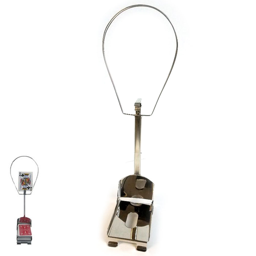 Basic effect: A freely selected playing card from any deck is chosen. The Card is marked and, placed back into the deck and shuffled. The Deck is placed in the base of a metal chrome-plated stand, then a balloon is blown up and placed on top of the stand. Suddenly, the balloon burst and in its place is exposed the marked card. Supplied in box with printed instructions. Use your own deck of plating cards and 11-inch balloons