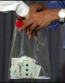 How often have you come across an excellent magical effect that depends on the force of a card or word or number etc. Usually, the instructions suggest you use ‘your favorite method’. Now, the ‘Clear Force Bag’ will solve the problem. This special bag made out of heavy weight transparent vinyl plastic, 8″ wide and 12″ long is large enough for stage use. The bag is used like a change bag and scores of effects are possible with this transparent bag. Comes complete with detailed instructions and over a dozen ideas for its use to start you off.