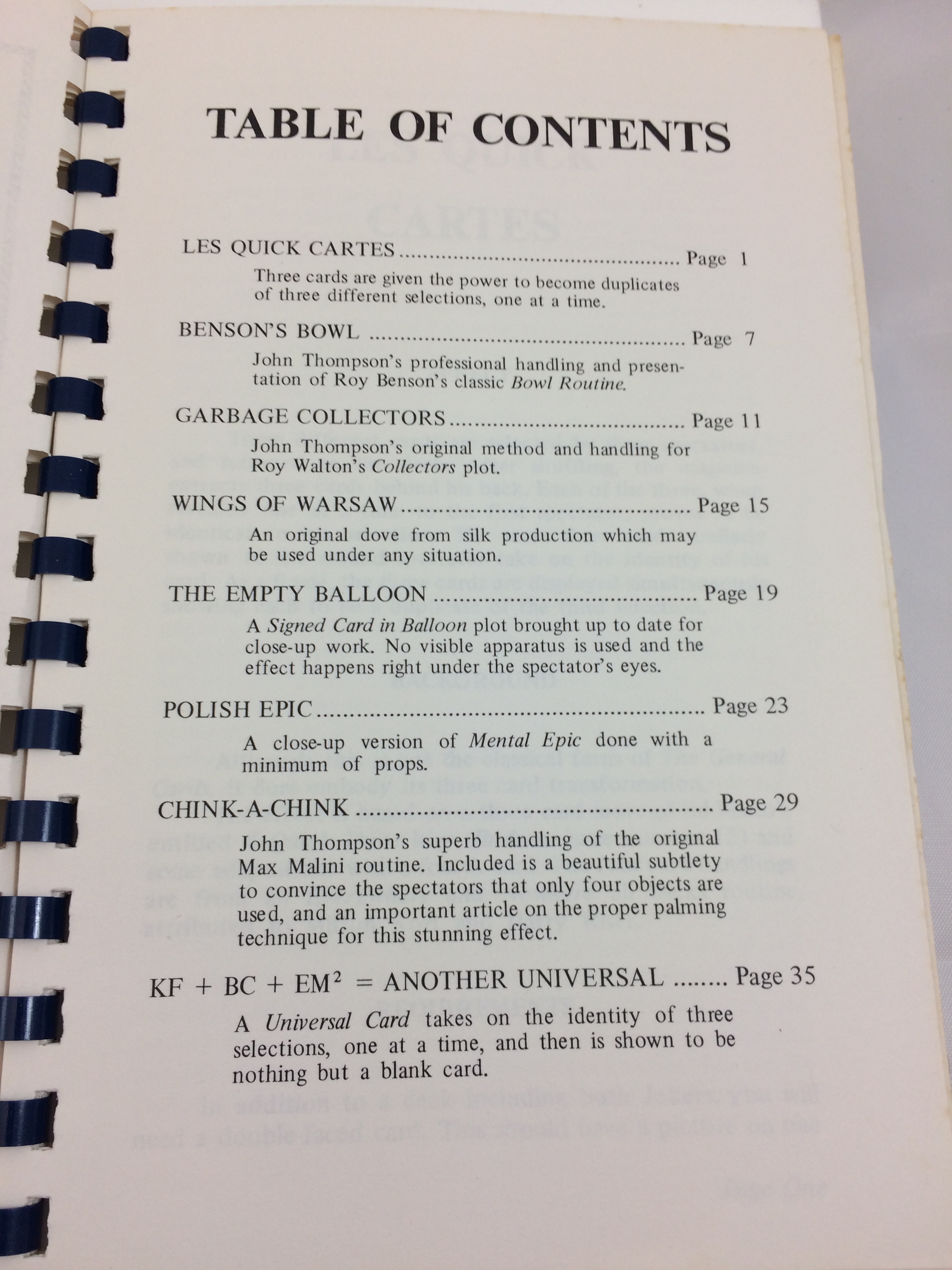 - Benson's Bowl: Thompson’s professional handling and presentation of Roy Benson’s classic 'Bowl Routine.'
